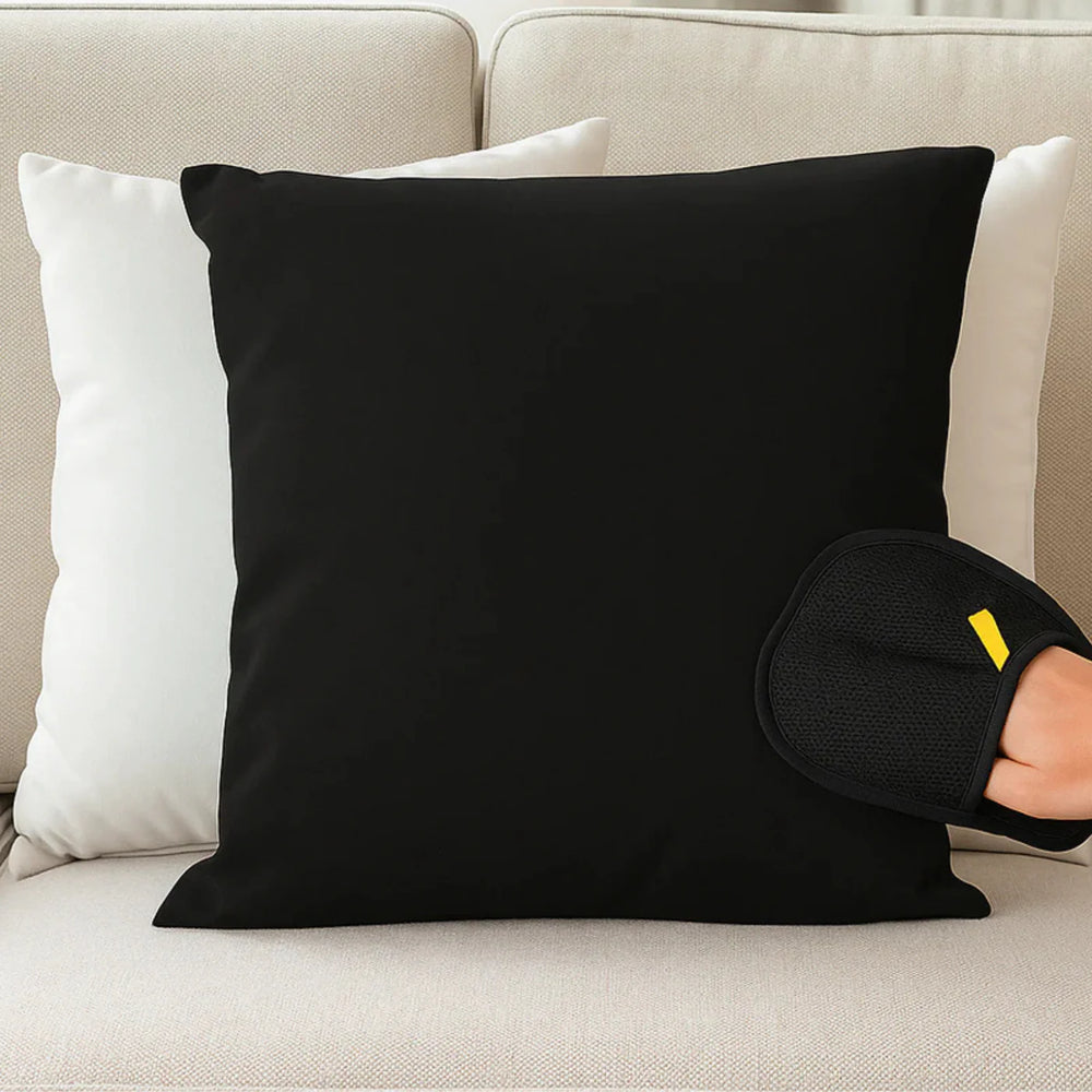 Run the glove over your couch, pillows, clothes, or any fabric in one smooth motion, always going in the same direction.